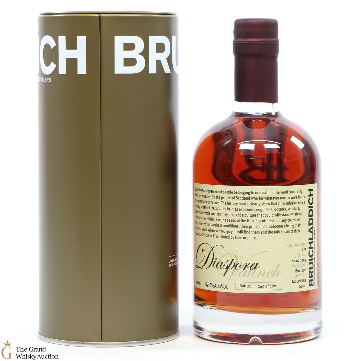 This bottle of Bruichladdich Diaspora Valinch was distilled on the 10th of February 1993.
