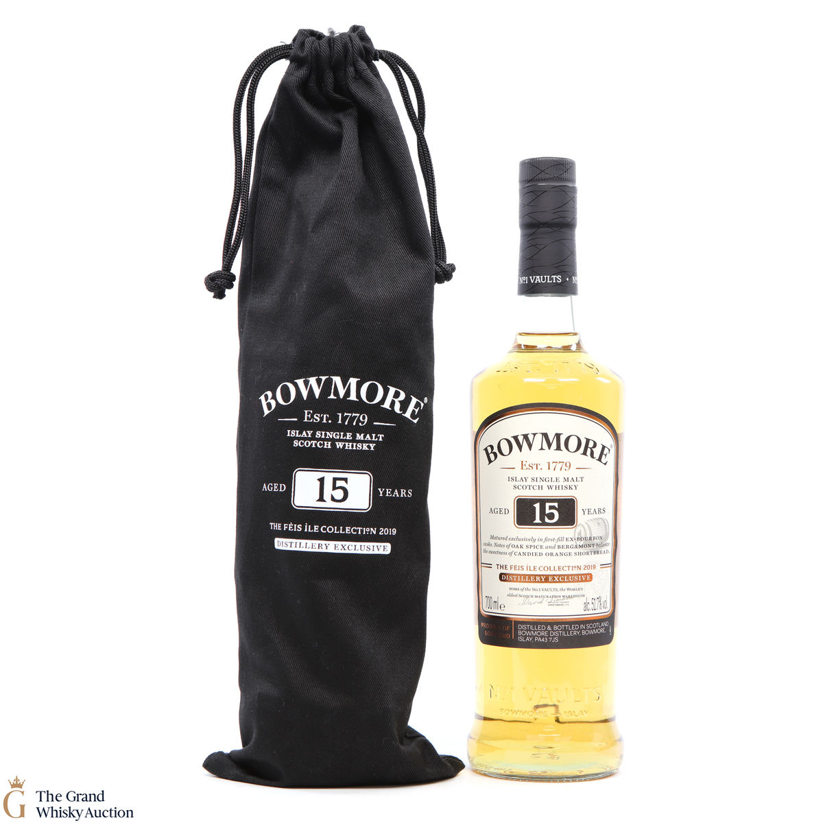 This is one of Bowmore's Fèis Ìle distillery exclusive releases of 2019. It was created through a marriage of some of their finest bourbon casks. The 15 year old single malt has notes of oak spice and bergamont balanced with the sweetness of candied orange shortbread. This is one of 3000 individually numbered bottles.