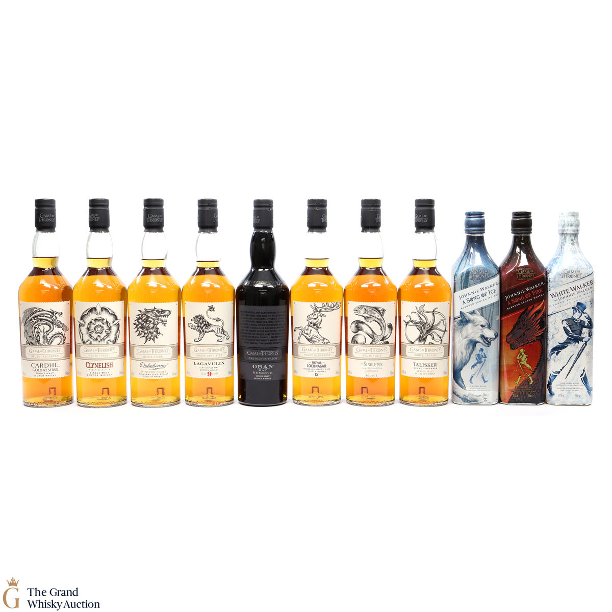 Game of Thrones series plus Johnnie Walker White Walker Game of Thrones edition, Song of Fire and Mortlach, Six Kingdoms edition. This lot includes 12 x 70cl.