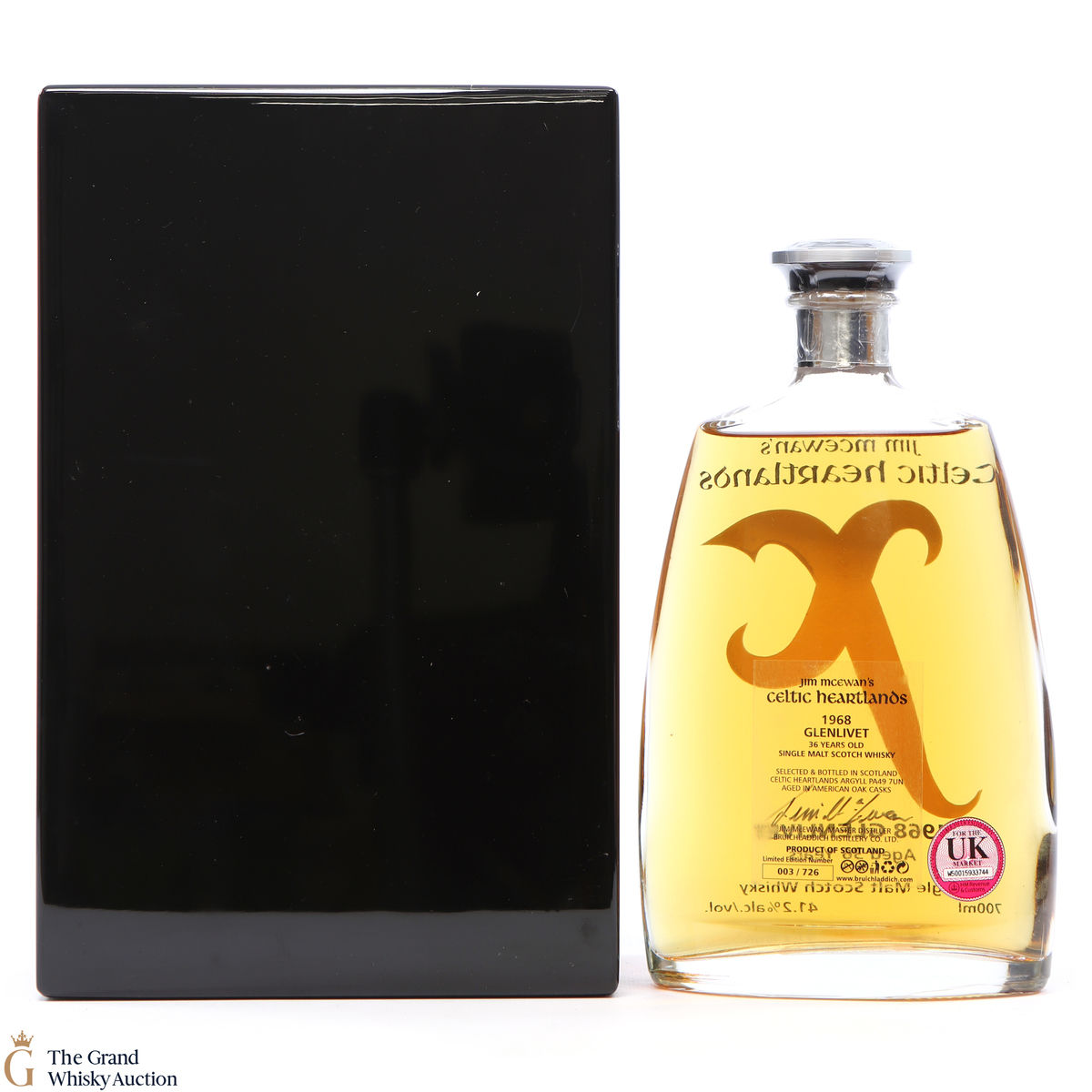 Ditilled at Glenlivet in 1968, this Speyside single malt matured for 36 years before being chosen by James himself. The whisky was aged in American Oak casks and yielded 726 bottles.
