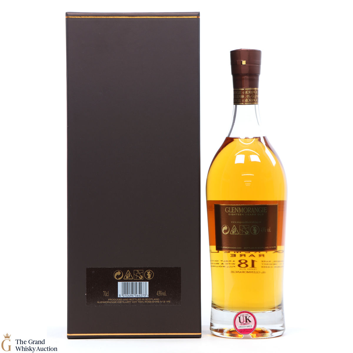 This bottle is an 18 year old Extremely Rare, Highland single malt produced by Glenmorangie. It has been perfected by the sixteen men of Tain who have specially aged this bottle for 18 years in superior oak casks and a period in Oloroso Sherry casks.