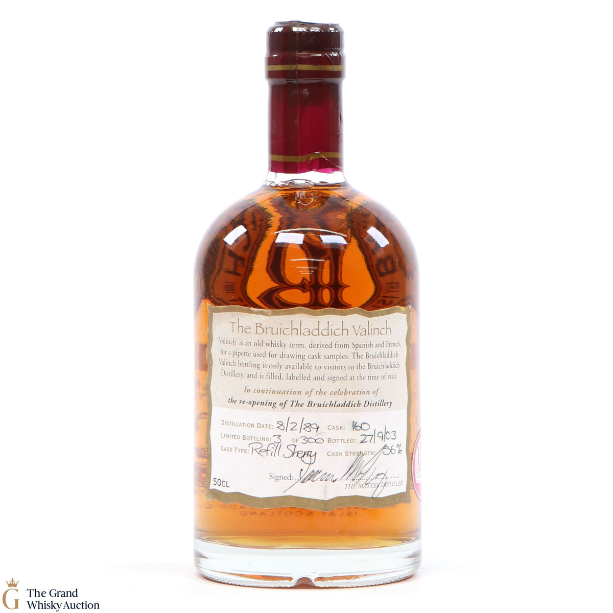 This bottling from Bruichladdich was distilled in 1989 and bottled from a single refill sherry cask #160. It was originally only available at Bruichladdich Distillery, released in continuation of the re-opening of Bruichladdich Distillery. This is one of 300 bottles. This is a 50cl bottling.