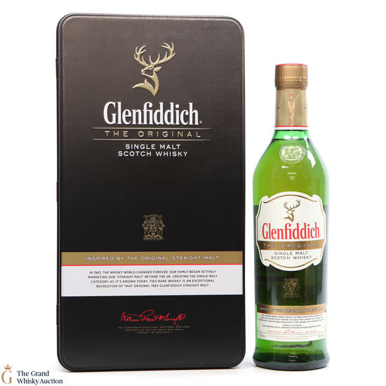 This is a limited edition release from Glenfiddich. The Original is based on Hamish Robertson's 1963 Straight Malt recipe, considered by many to be the world's first single malt. Presented in a bold premium black tin, this is a non-age statement single malt whisky bottled at 40% abv.