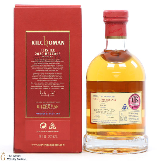 Due to the cancellation of Fèis Ìle 2020, this year's Kilchoman festival release was an online exclusive and is one of just 2630 bottles available. Matured in ex-bourbon barrels for a minimum of 12 years and bottled at the cask strength (54.2%).