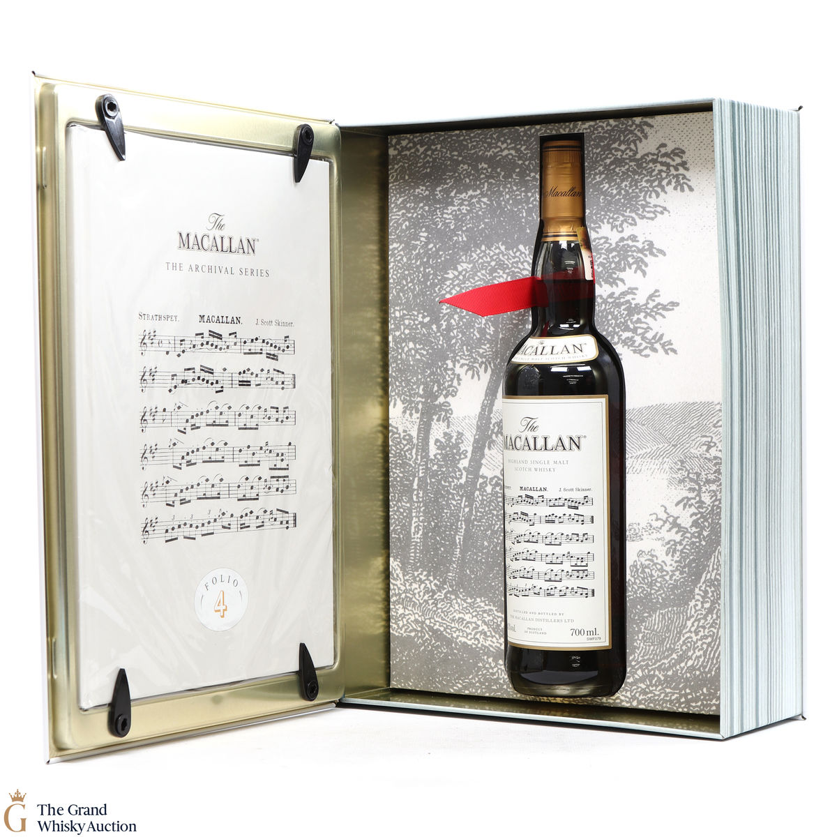 The fourth edition in the Archival Series from The Macallan. Folio 4 remembers the legendary advertising campaigns of the 1970s, 1980s and 1990s that brought The Macallan to the public’s attention outside of Scotland. It is presented in a beautiful book shaped, tin case. It features an advertisement including a Strathspey composed by James Scott Skinner (1843-1927). The advert notes that Skinner was so moved by his favourite malt he created a unique piece of music featuring his signature lilting notes with the simple catchphrase: “The Macallan. The Malt.”