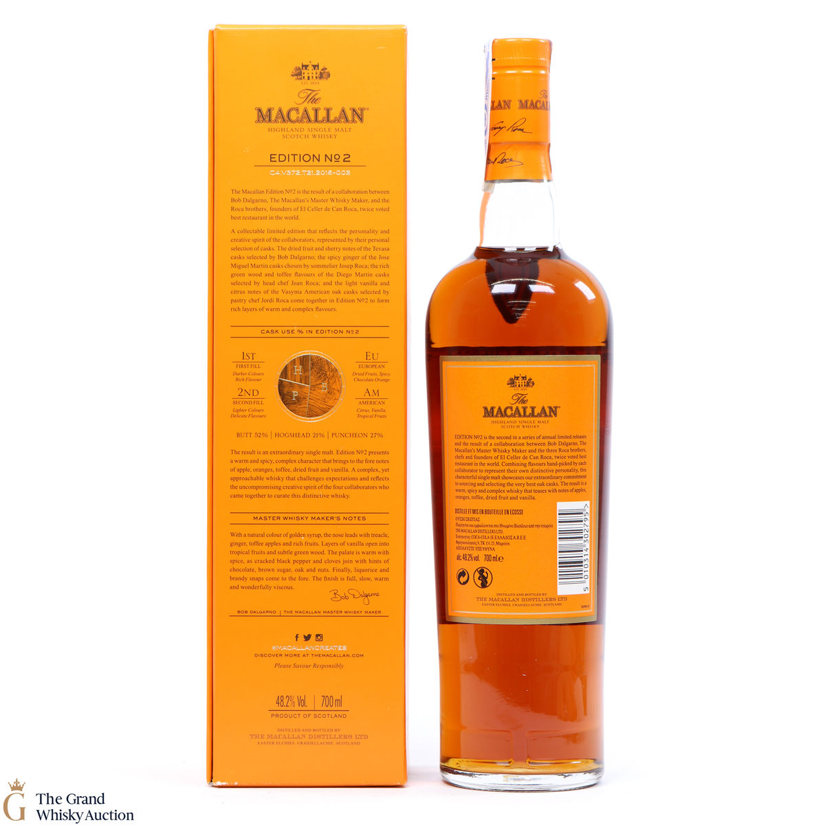 This is the second release from the Macallan Edition series. Edition No.2 is a collaboration between Macallan's master blender Bob Delgarno and legendary Spanish chefs Joan, Josep and Jordi Roca. The Rocas are the three brothers behind El Celler de Can Roca (named Best Restaurant in the World twice by Restaurant magazine). This single malt was drawn from a combination of sherry puncheons, butts and refill hogsheads.