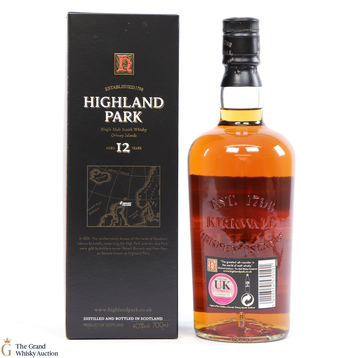 Highland Park 12 year old - one of the best malts in the world year on year. This bottling has been in its core range for over 100 years. This design of bottle was used by Highland Park from 1999-early 2000s.
