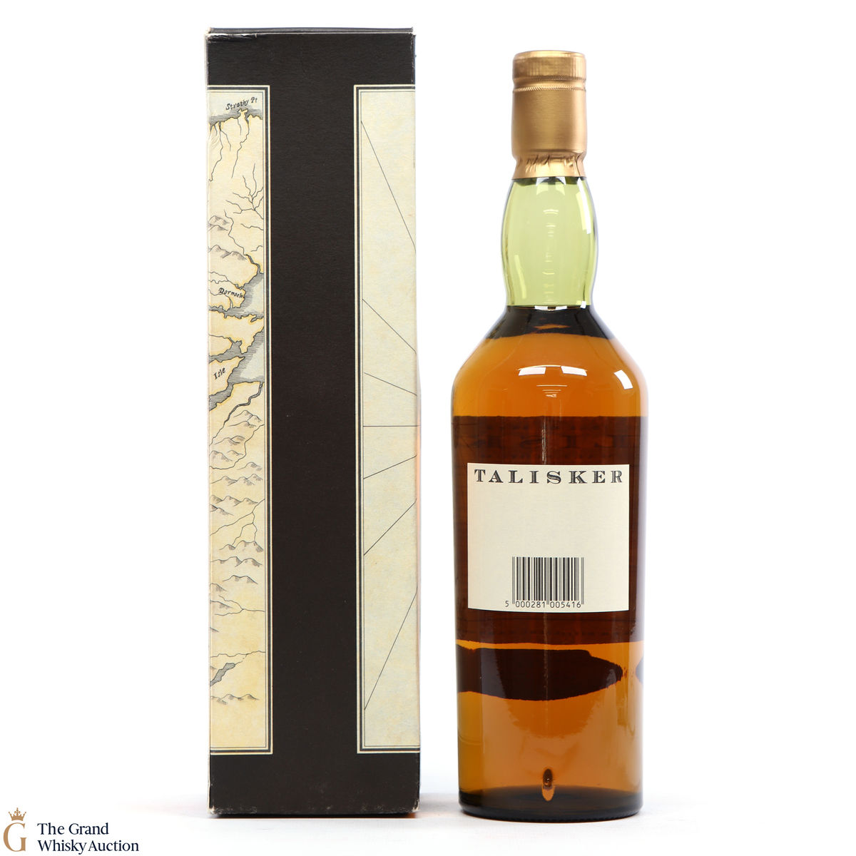 An older release of 10 Year Old from Talisker distillery on the Isle of Skye. Aged for a minimum of 10 years in American oak casks. The bottle label and the box feature a map of Skye.
