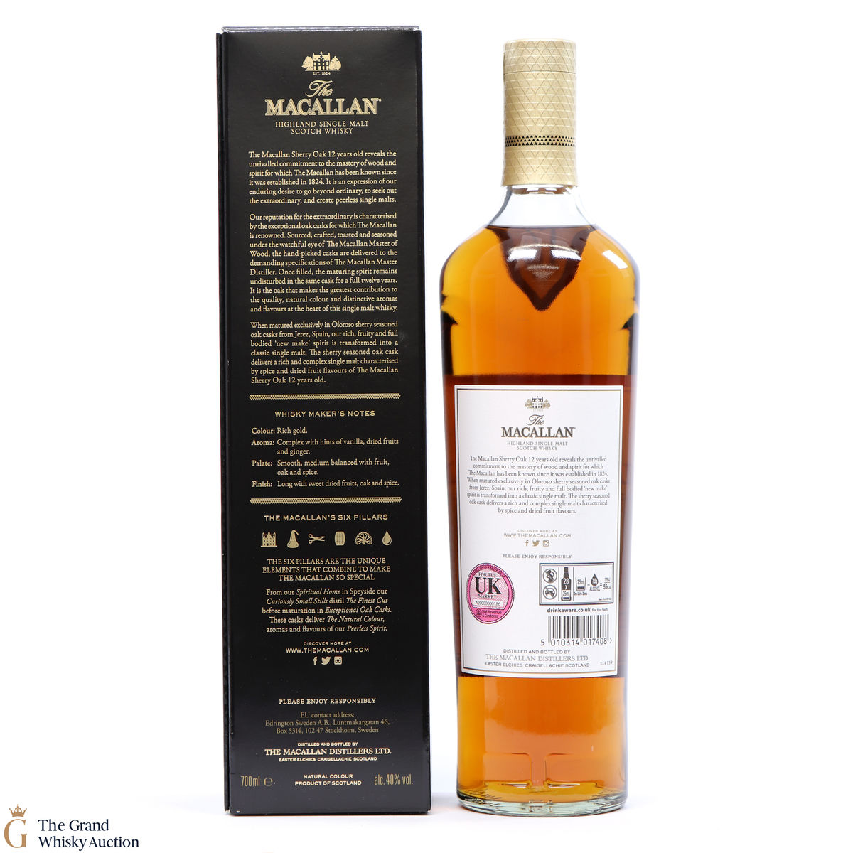 This s and old-style bottling of the Macallan Sherry Oak 12-Year-Old which forms part of the Sherry Oak range which features a series of single malt whiskies matured exclusively in hand-picked sherry seasoned oak casks from Jerez for richness and complexity.