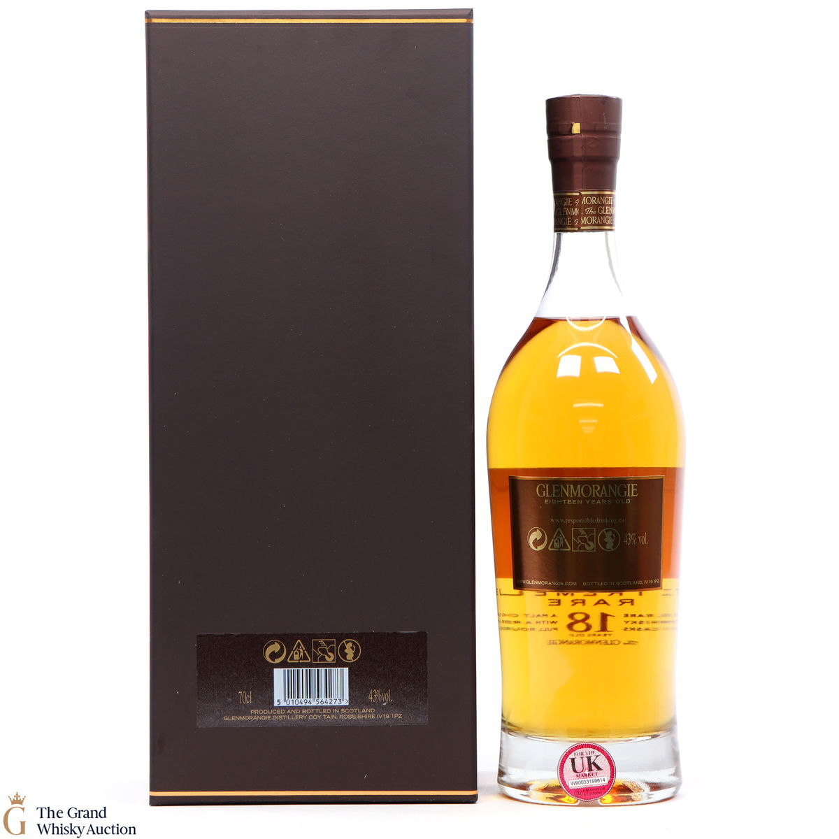 This bottle is an 18 year old Extremely Rare, Highland single malt produced by Glenmorangie. It has been perfected by the sixteen men of Tain who have specially aged this bottle for 18 years in superior oak casks and a period in Oloroso Sherry casks.