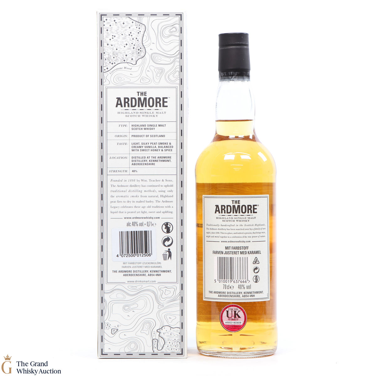 Ardmore Legacy was launched in 2014 to replace Ardmore Traditional. Ardmore Legacy is made with 80% peated and 20% unpeated malt.