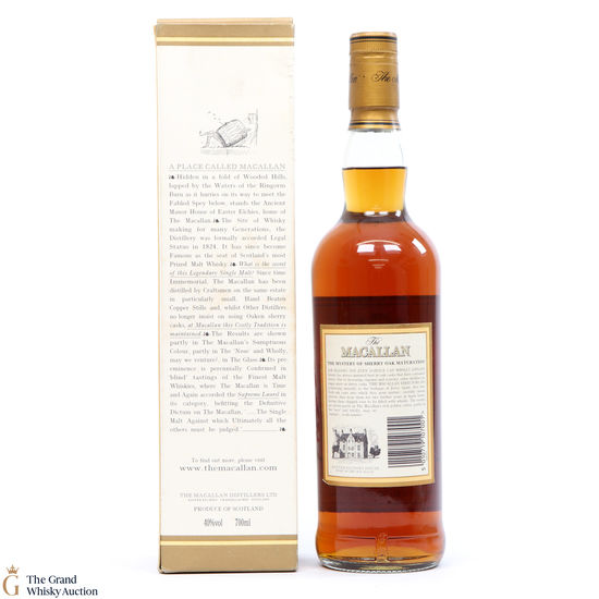 This is an old-style of Macallan 10 Year old was bottled in the 1990s. This classic Speyside malt whisky matured in sherry oak casks from Jerez. Very collectable.