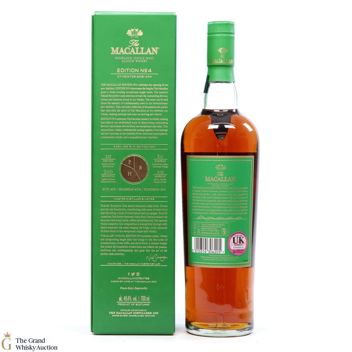 The fourth release in the Edition Series from The Macallan, this Speyside single malt is a celebration of the distillery's whisky making heritage, combining a unique selection of oak cask styles. Edition No.4 reflects the craftsmanship and pioneering design of the new Macallan distillery.