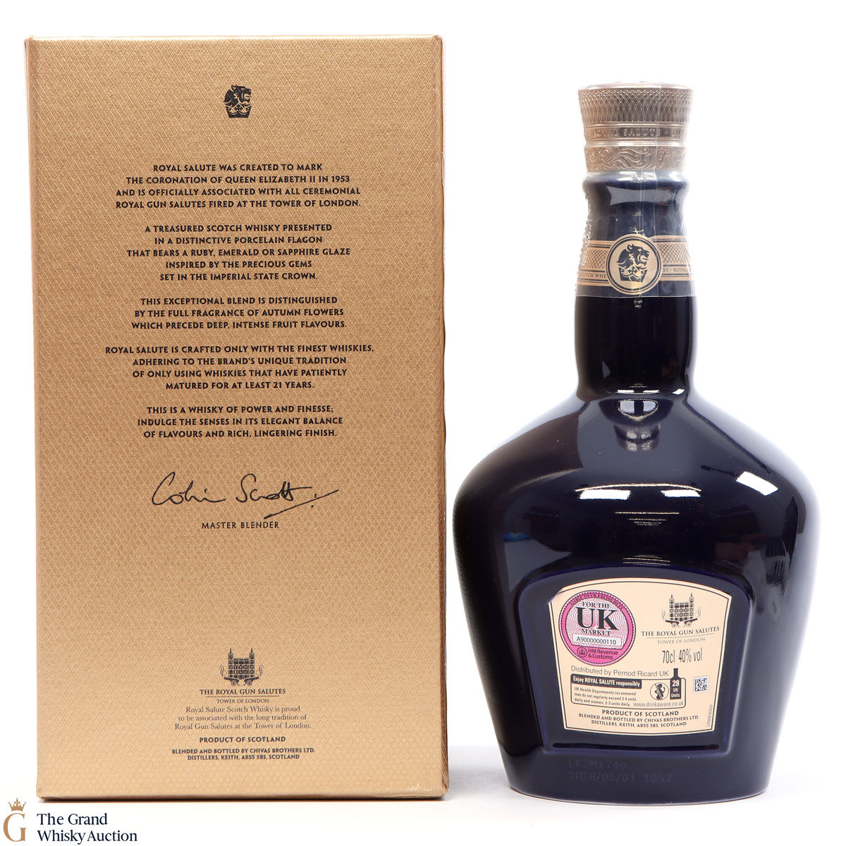 This is a special Sapphire-coloured edition of Chivas' Royal Salute 21 Year Old blended whisky from the Chivas Royal Salute Range.