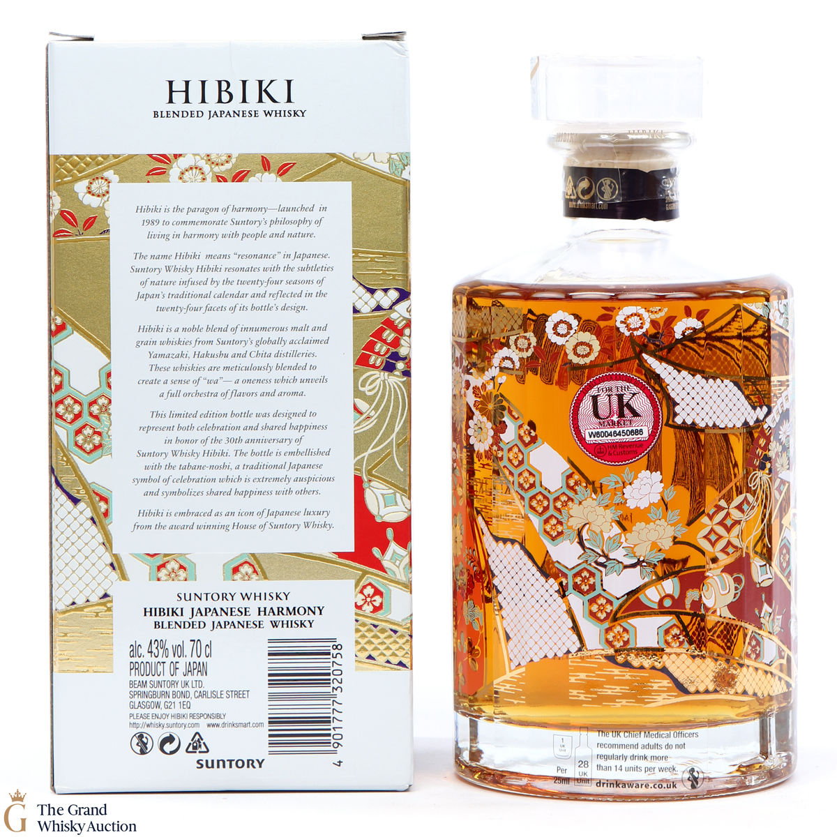 Hibiki Japanese Harmony is a blend of over ten malts and grains featuring Yamazaki, Hakushu, and Chita all aged in five types of cask. It was developed by fourth generation chief blender Shinji Fukuyo with production overseen by third generation master blender and great-grandson of the founder, Shingo Torii.