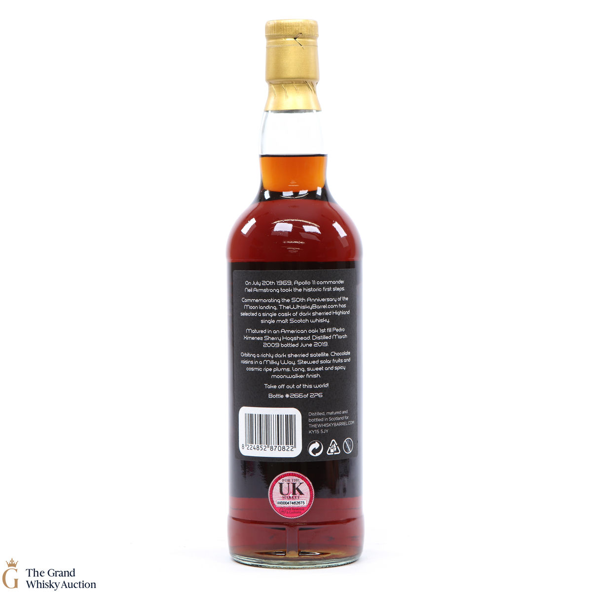 Distilled at the Highland distillery, Deanston lay this cask to mature in 2009 and it was bottled 10 years later. #WB1003 was a 1st fill PX Hogshead and was bottled to commemorate the Apollo moon landing.