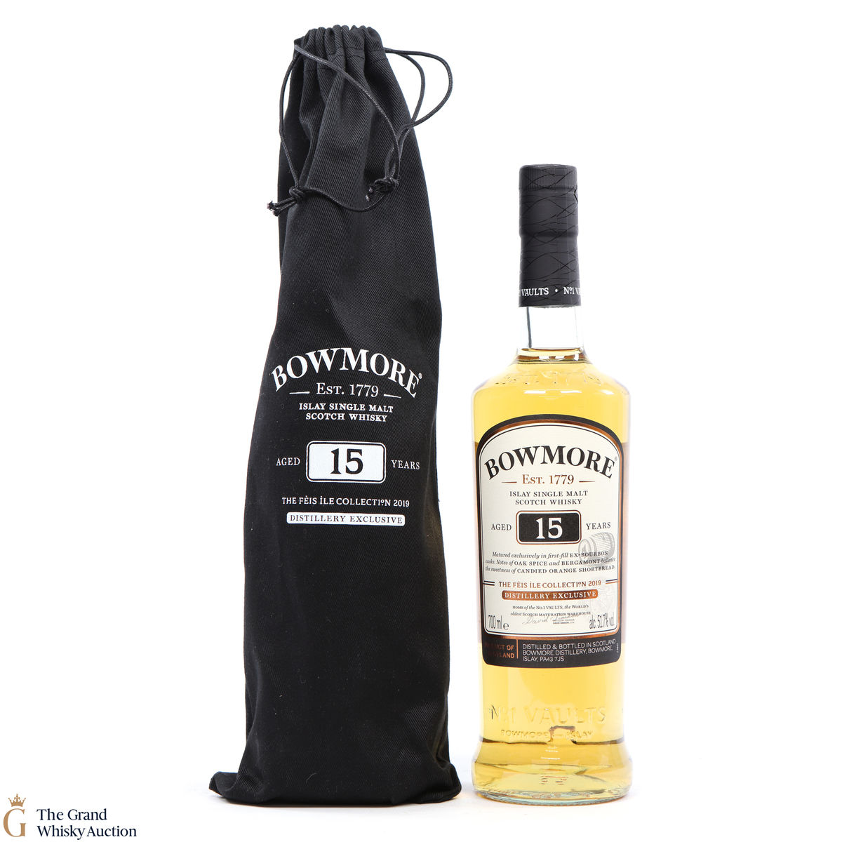This is one of Bowmore's Fèis Ìle distillery exclusive releases of 2019. It was created through a marriage of some of their finest bourbon casks. The 15 year old single malt has notes of oak spice and bergamont balanced with the sweetness of candied orange shortbread. This is one of 3000 individually numbered bottles.