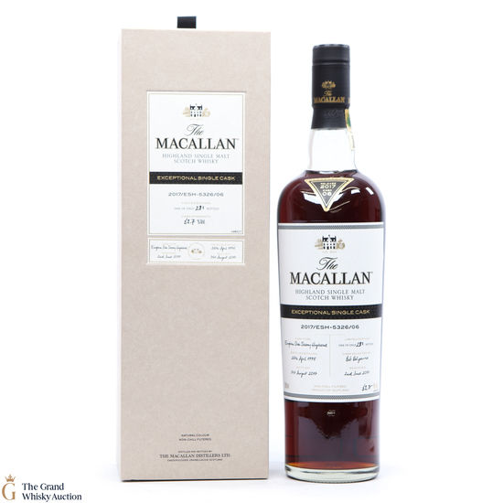 This Macallan exceptional single cask was distilled on the 26th April 1995, matured in single European Oak Sherry Hogshead #5326 and bottled over 22 years later in 2017.