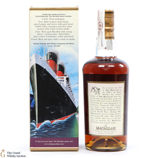 During the 1950s, Macallan whisky was as rich and spicy as modern-day Macallan, but with a hint of peat smoke. This was due to Spanish oak sherry casks becoming available again, following the disruption of the second world war. Macallan was ale to revert to using only first and second fill casks. 50cl, 40%.