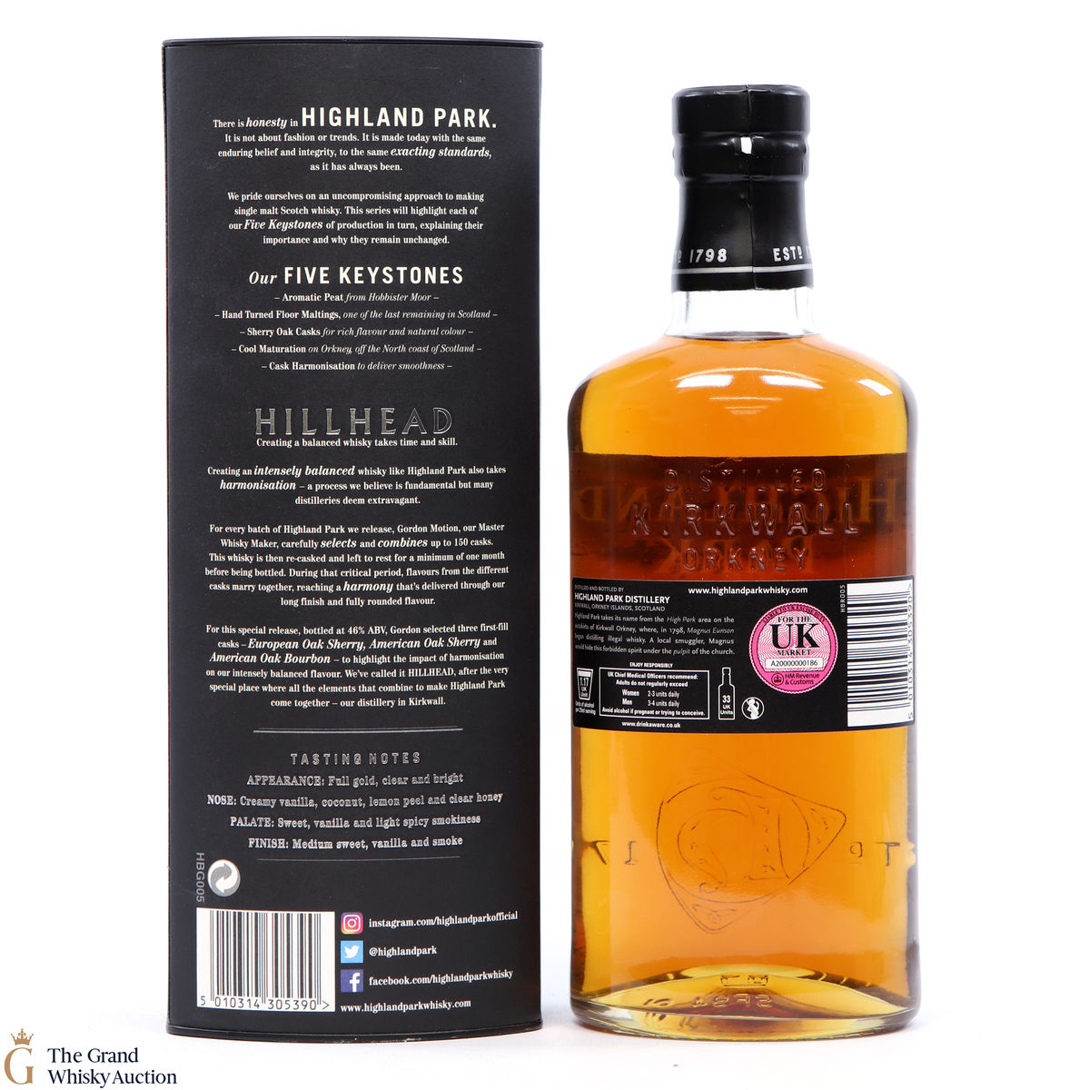 'Hillhead' bottled at 46% ABV, marries both flavour and strength and was matured in three casks: European Oak Sherry, American Oak Sherry and American Oak Bourbon. Hillhead was the last in a series of five special editions, showcasing Highland Park's five keystones of production.