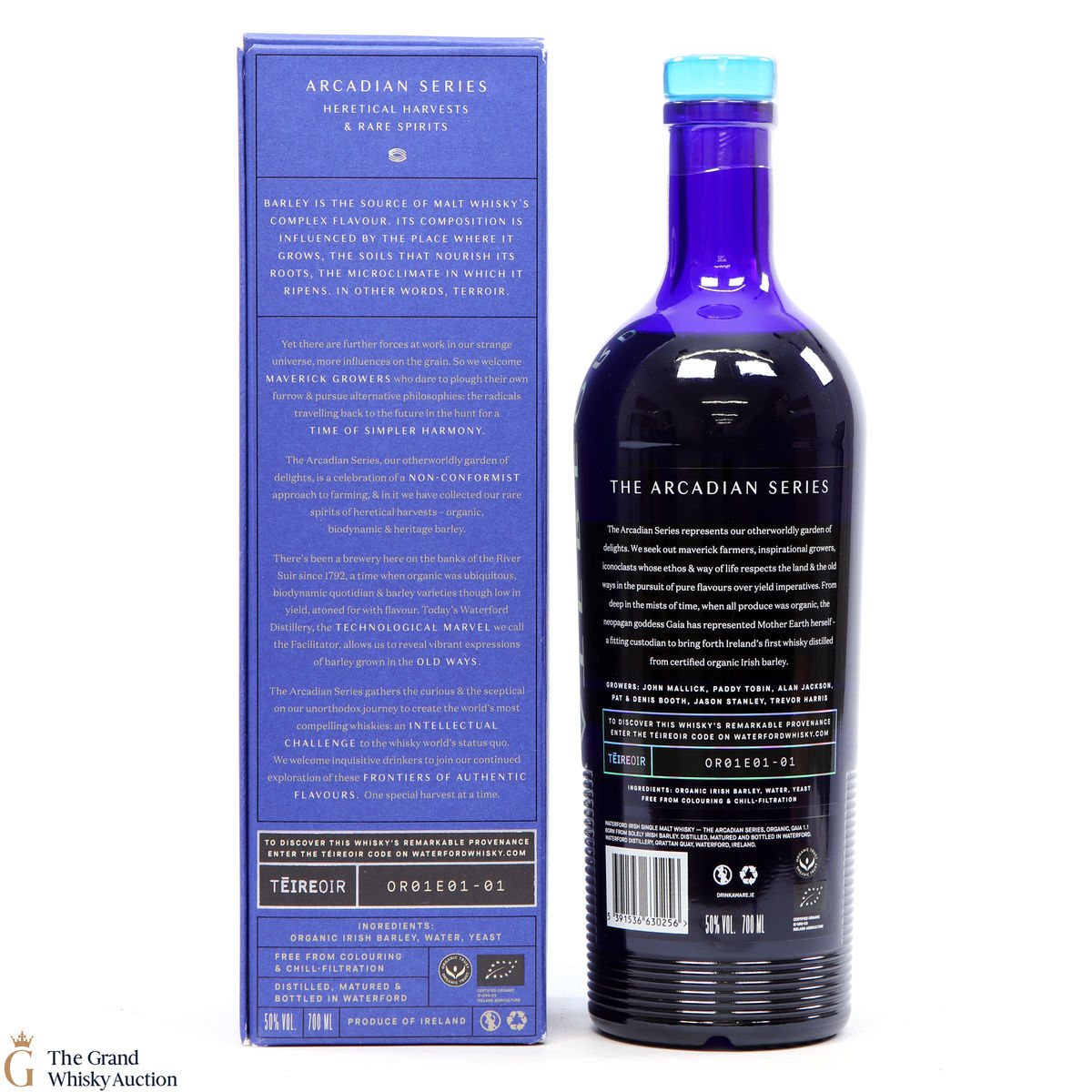 Gaia 1.1 Organic - Waterford Distillery has released Ireland’s very first organic whisky in the modern age. Organic Gaia 1.1 was distilled in 2016 from organic Irish barley grown by a small, dedicated band of organic farmers. The single malt whisky is certified by the Organic Trust. This whisky has been matured in a spectrum of fresh, super-premium oak: 42% first-fill US oak, 17% virgin US oak, 23% premium French oak and 18% Vin Doux Naturel – sweet fortified wine casks. It is bottled at 50% ABV without colouring, chill-filtration or any additives.