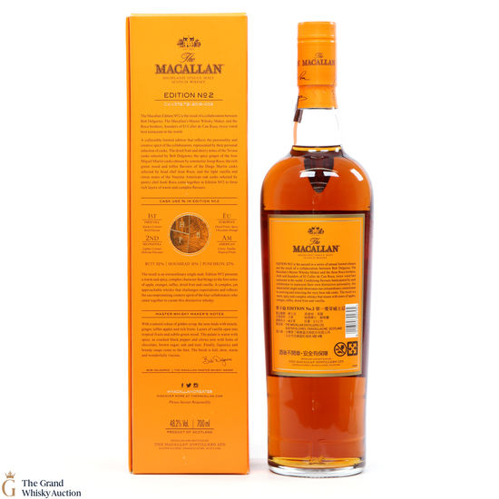 This is the second release from the Macallan Edition series. Edition No.2 is a collaboration between Macallan's master blender Bob Delgarno and legendary Spanish chefs Joan, Josep and Jordi Roca. The Rocas are the three brothers behind El Celler de Can Roca (named Best Restaurant in the World twice by Restaurant magazine). This single malt was drawn from a combination of sherry puncheons, butts and refill hogsheads.