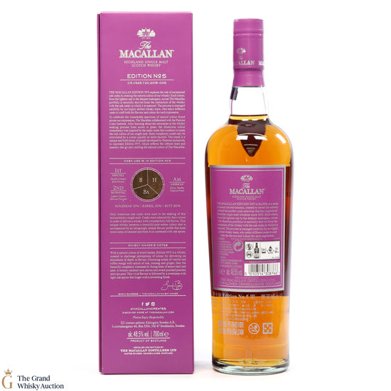 The fifth release in the Edition Series from The Macallan, The Macallan Edition No. 5 celebrates The Macallan’s extensive natural colour spectrum and the intricate whisky-making process, in partnership with masters at the Pantone Color Institute™ to create a unique shade of purple that features on the packaging.