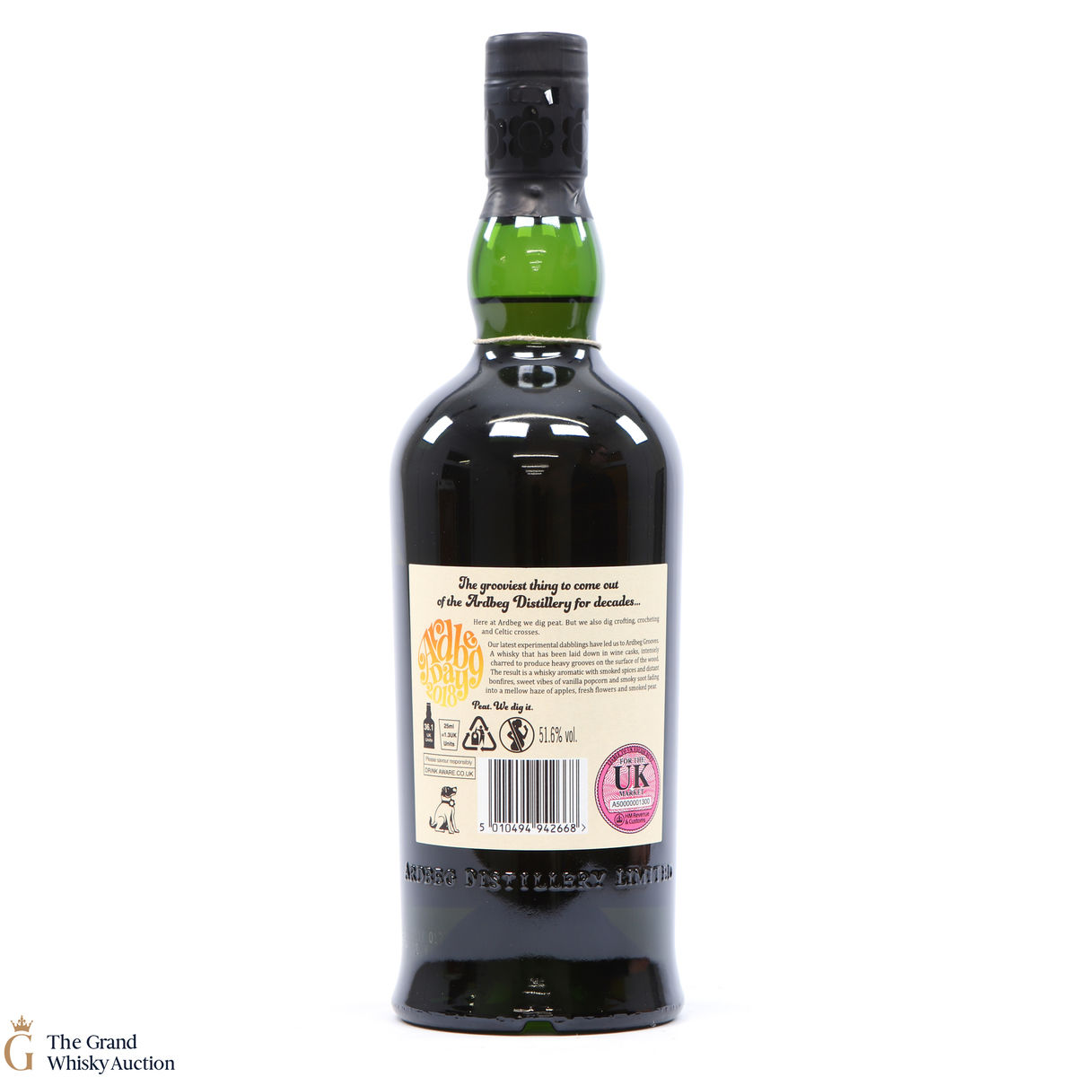 This limited edition Islay single malt was released to mark the 2018 Ardbeg Day at the Islay Festival of Music & Malt. The theme is a throwback to the Island's 1960s spirit, embodying the ideals of 'peat & love'! Ardbeg Grooves is crafted with ex-wine casks that are re-charred to create heavy grooves in the wood, allowing more interaction with the spirit and creating a richer flavour.