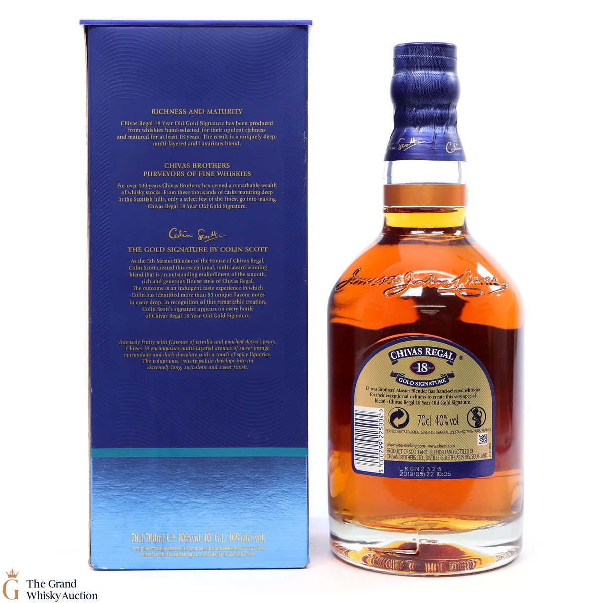 This is a 70cl bottling of Chivas Regal 18 Year Old Gold Signature. The packaging and bottling code indicate that it was bottled in 2010.