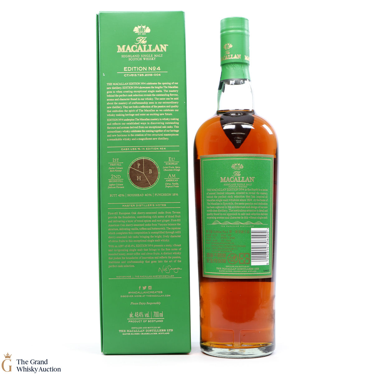 The fourth release in the Edition Series from The Macallan, this Speyside single malt is a celebration of the distillery's whisky making heritage, combining a unique selection of oak cask styles. Edition No.4 reflects the craftsmanship and pioneering design of the new Macallan distillery.