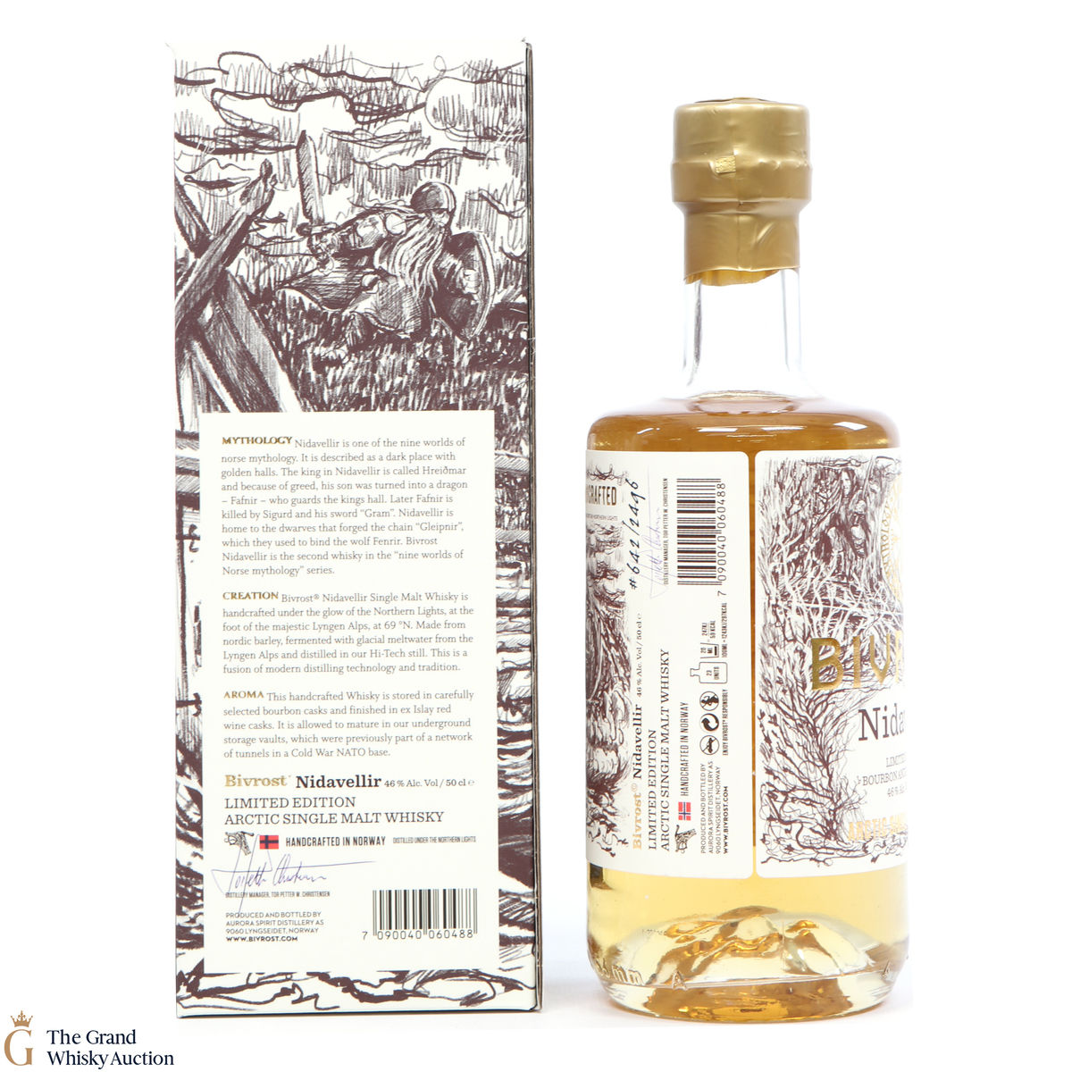 This is a limited edition bottle created in Arctic Norway was 'handcrafted under the Northern Lights'. Matured in bourbon casks and given a finishing period of 5-6 months in nicely seasoned, well-travelled casks. Bivrost Nidavellir is the second Whisky in the “nine worlds of Norse mythology” series. This is a 50cl bottling.