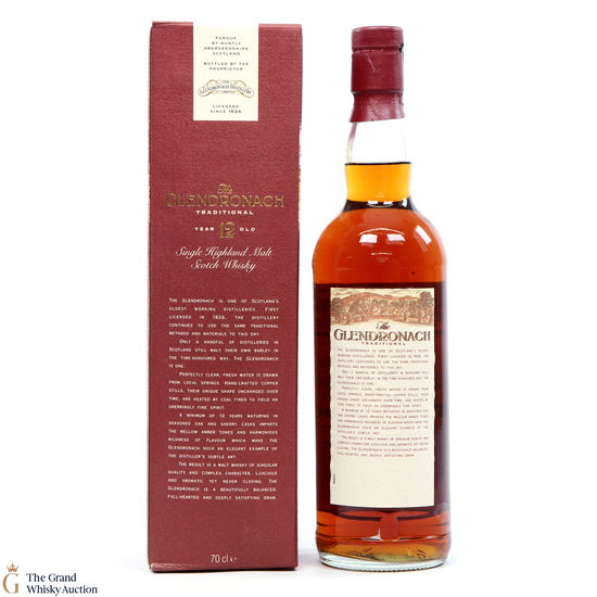 This is an old bottling of GlenDronach 12 Year Old Traditional single malt. It was matured in seasoned oak and Sherry casks. This is a bottle from the 1990s.