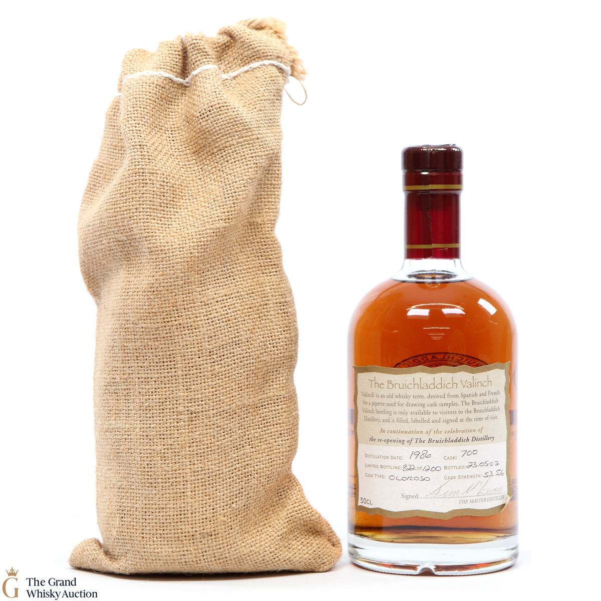 This bottling from Bruichladdich was distilled in 1986 and bottled from a single Oloroso Cask #700. It was originally only available at Bruichladdich Distillery, released in continuation of the re-opening of Bruichladdich Distillery. This is one of 1200 bottles. This is a 50cl bottling.