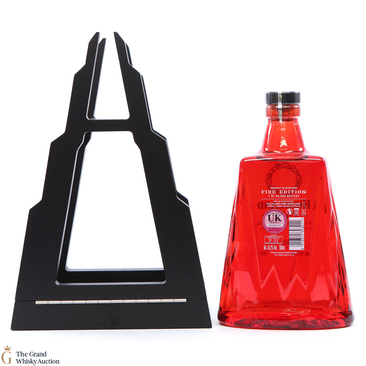 This stunning Highland Park 15 year old single malt follows the 'Ice' edition to complete this Highland Park two-part series. The 'Fire' edition celebrates Muspelheim, the glowing Norse fire realm of destruction. The malt was matured in refill Port casks and bottled at 45.2% abv. It's presented in a cradle shaped like a mountain.