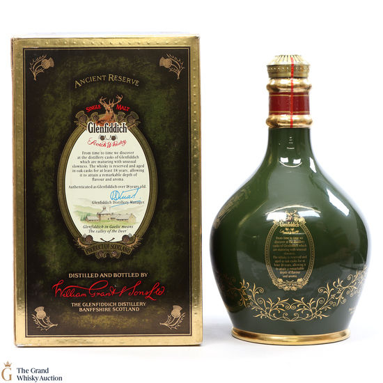 This whisky has been reserved by the distillery and has been aged in Oak casks. A classic decanter containing 18 year old Glenfiddich, produced by Spode.
