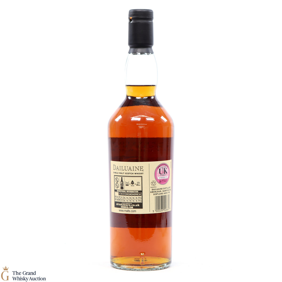 Due to the various ages of bottles and their seals, the condition of liquid is at the buyer's discretion and no claim can be lodged against failure/leakage in transit. Loss and breakage cover is available at 3% of the hammer price as standard. If the lot is not insured, no claim can be lodged against the courier or The Grand Whisky Auction for breakage or loss in transit.