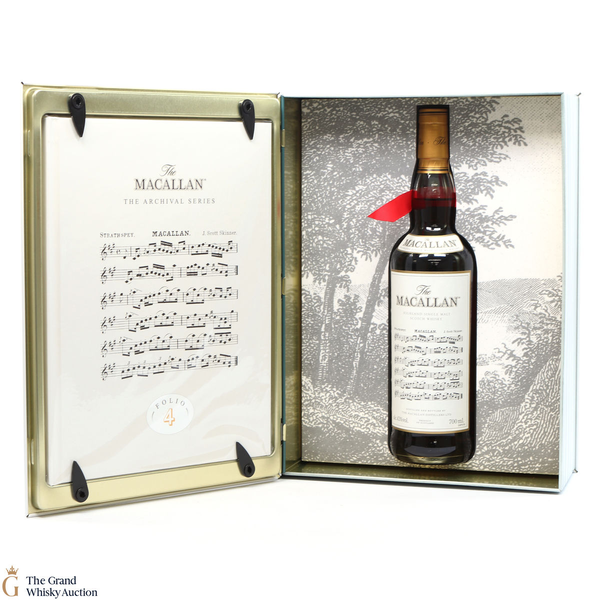The fourth edition in the Archival Series from The Macallan. Folio 4 remembers the legendary advertising campaigns of the 1970s, 1980s and 1990s that brought The Macallan to the public’s attention outside of Scotland. It is presented in a beautiful book shaped, tin case. It features an advertisement including a Strathspey composed by James Scott Skinner (1843-1927). The advert notes that Skinner was so moved by his favourite malt he created a unique piece of music featuring his signature lilting notes with the simple catchphrase: “The Macallan. The Malt.”