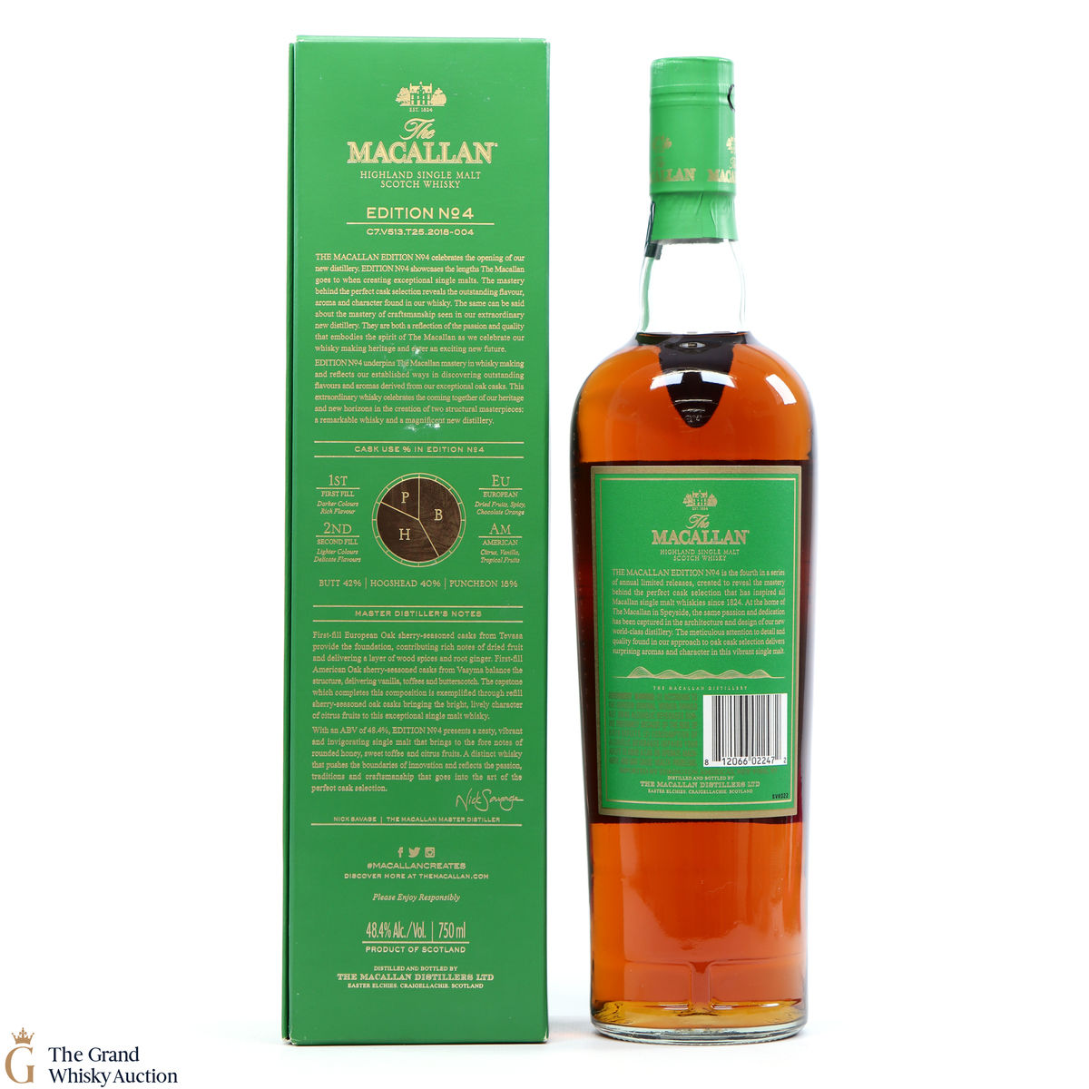 The fourth release in the Edition Series from The Macallan, this Speyside single malt is a celebration of the distillery's whisky making heritage, combining a unique selection of oak cask styles. Edition No.4 reflects the craftsmanship and pioneering design of the new Macallan distillery.