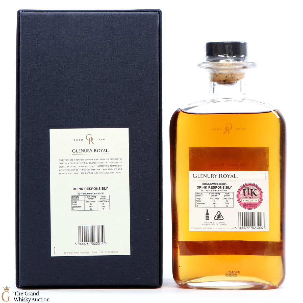 This bottling is becoming increasingly sought after due to the closure of the distillery. Glenury Royal 36 Year Old was distilled in 1970 and was bottled at 57.9%. This is one of just 1926 bottles produced.