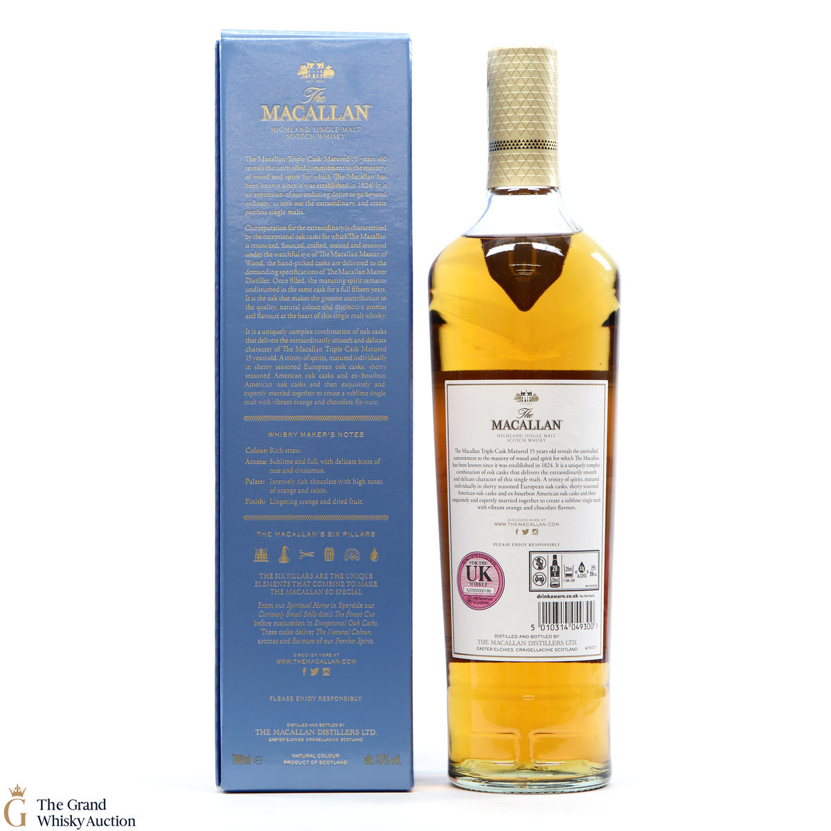 This 15 year old Macallan single malt was released in 2018 as part of the Triple Cask range (which was brought out to replace the Fine Oak range in 2018). This whisky has been matured for 15 years in a combination of European sherry seasoned casks, American sherry seasoned casks and American ex-bourbon casks.