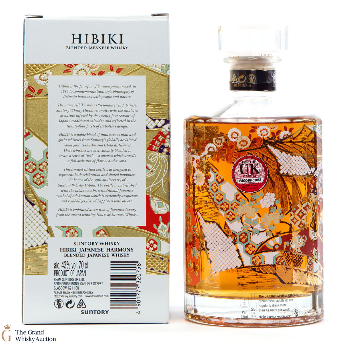 Hibiki Japanese Harmony is a blend of over ten malts and grains featuring Yamazaki, Hakushu, and Chita all aged in five types of cask. It was developed by fourth generation chief blender Shinji Fukuyo with production overseen by third generation master blender and great-grandson of the founder, Shingo Torii.