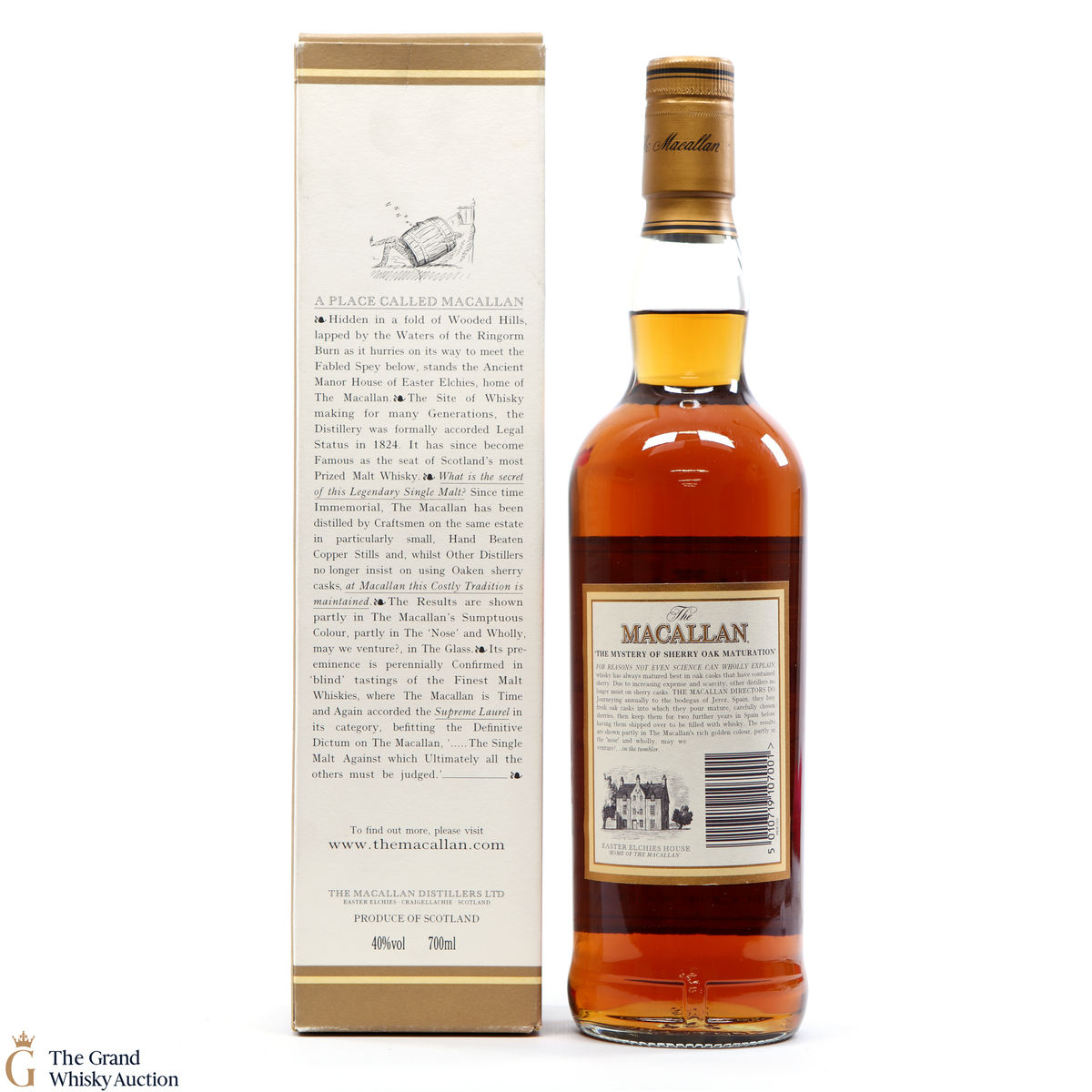This is an old-style of Macallan 10 Year old was bottled in the 1990s. This classic Speyside malt whisky matured in sherry oak casks from Jerez. Very collectable.