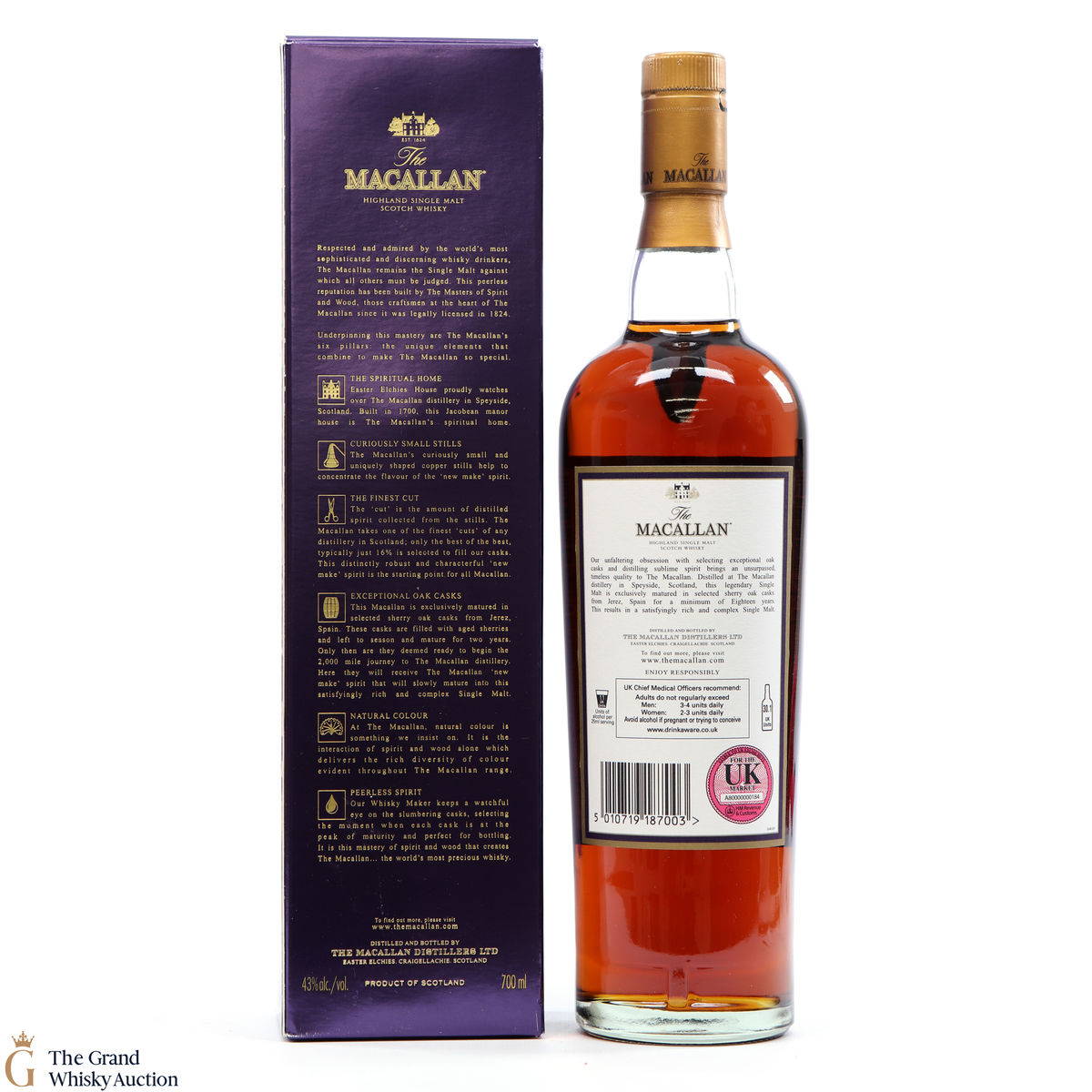 Due to the various ages of bottles and their seals, the condition of liquid is at the buyer's discretion and no claim can be lodged against failure/leakage in transit. Loss and breakage cover is available at 3% of the hammer price as standard. If the lot is not insured, no claim can be lodged against the courier or The Grand Whisky Auction for breakage or loss in transit.