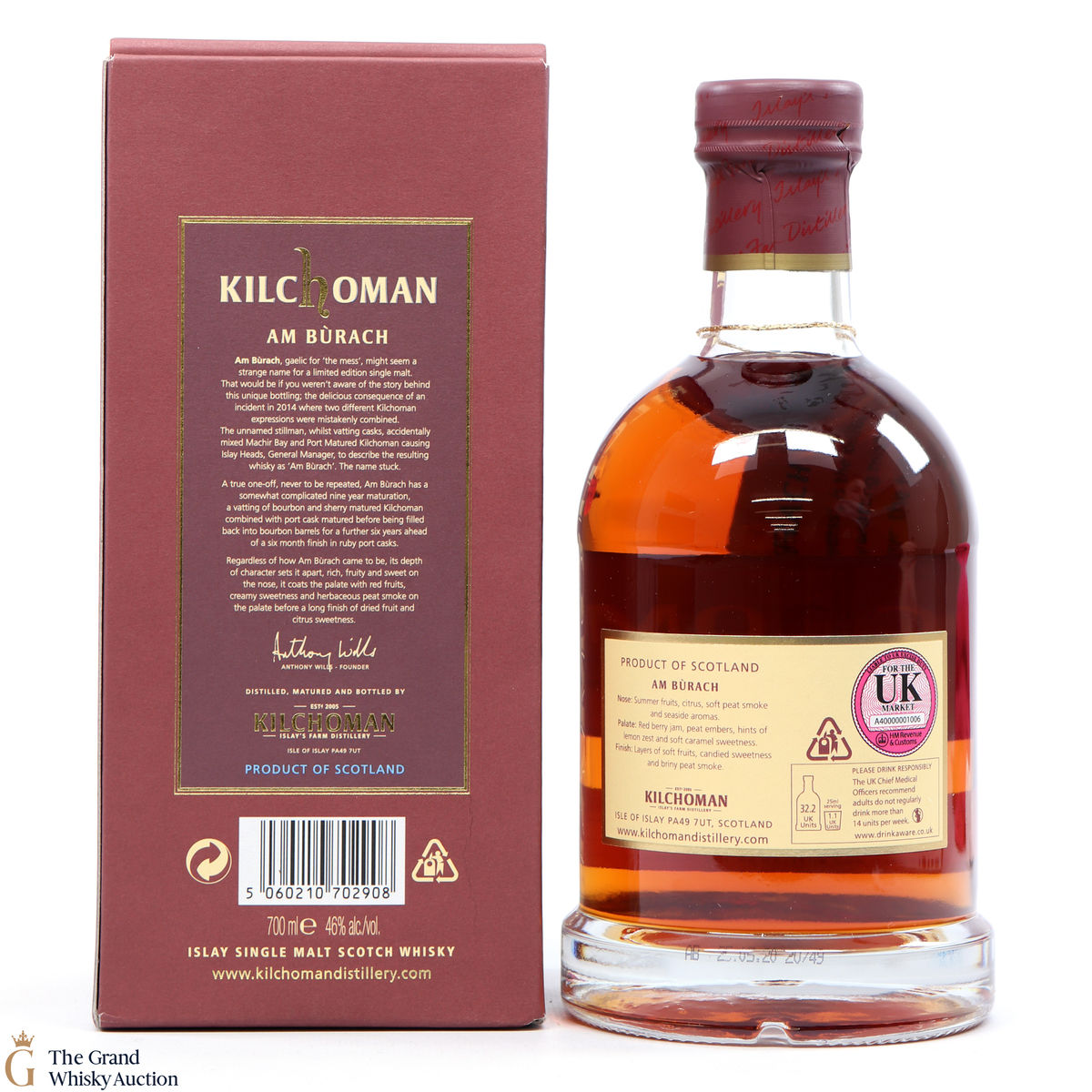 Kilchoman's Am Bùrach - meaning "the mess" in Gaelic! Created when a Stillman mixed together some Machir Bay and Port Matured Kilchoman while vatting casks! The whisky was filled back into Bourbon barrels and eventually given a finishing period in ruby port casks creating an unintentionally tasty dram!