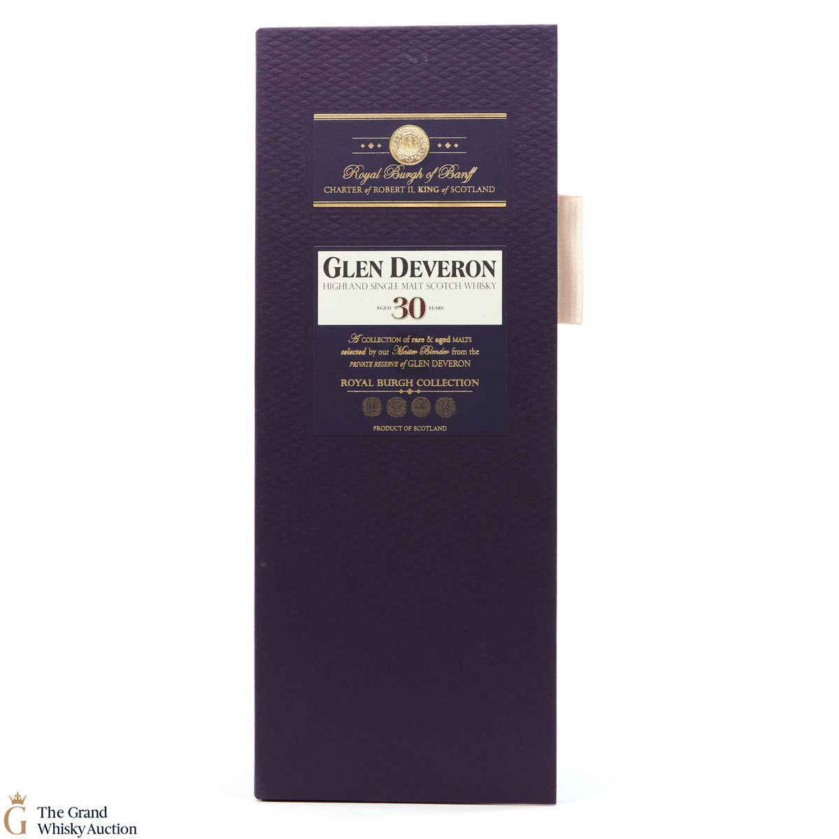 This is a 30-year-old single malt from Macduff distillery, under the name Glen Deveron. This bottling was originally released for the Travel Retail market as part of the Glen Deveron Royal Burgh Collection. The collection commemorates the Royal Burgh of Banff, the ancient seaport beside the distillery that was granted a Royal Charter by Robert II, King of Scotland, ‘Robert the Bruce’. This Charter is represented by the seal which appears on the label of every bottle.