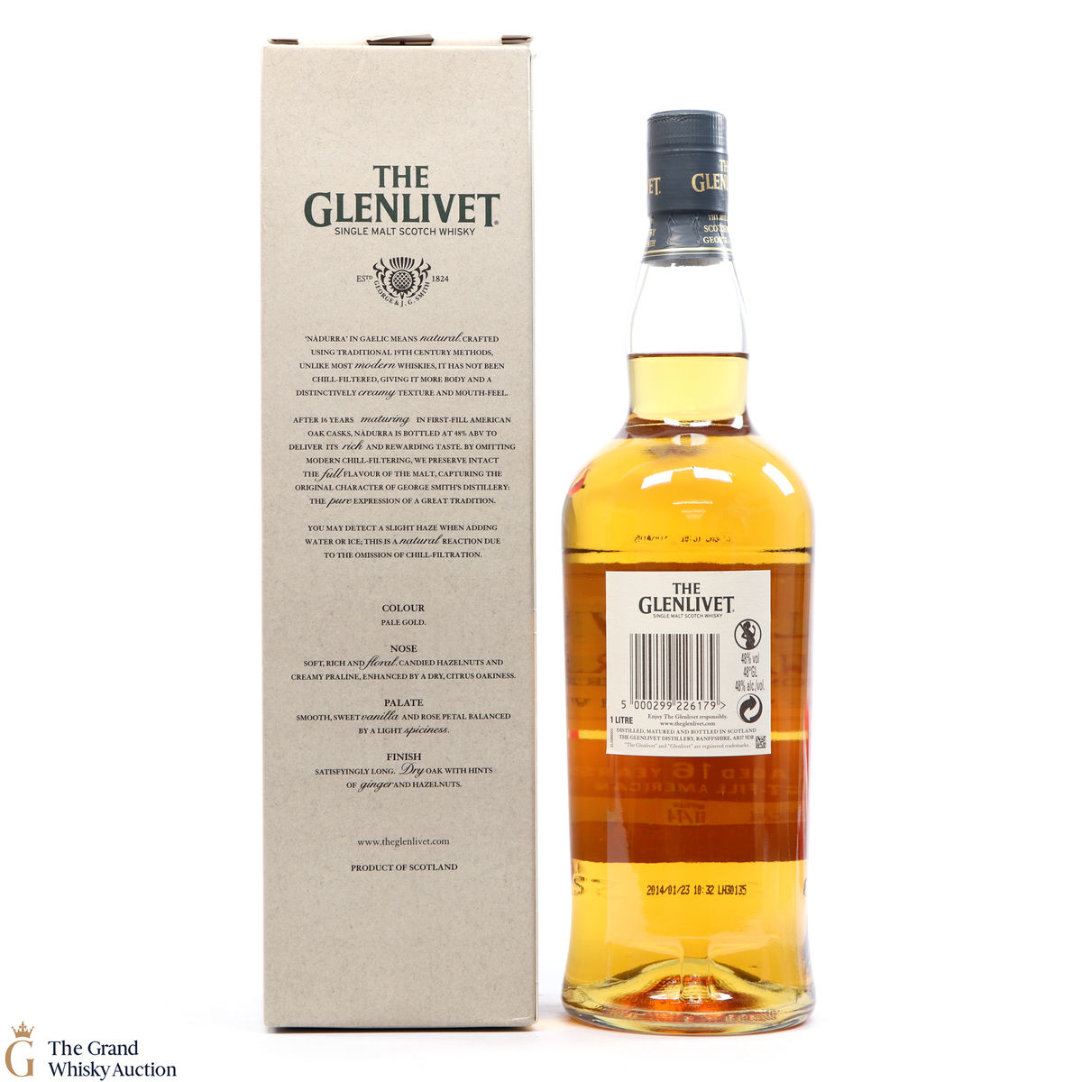 Released as part of the Glenlivet Nadurra range, this single malt was fully matured in first-fill American Oak casks. Every release in this series was bottled and released in small batches - this is batch #0114G was bottled in 01/14. This is a 70cl bottling.