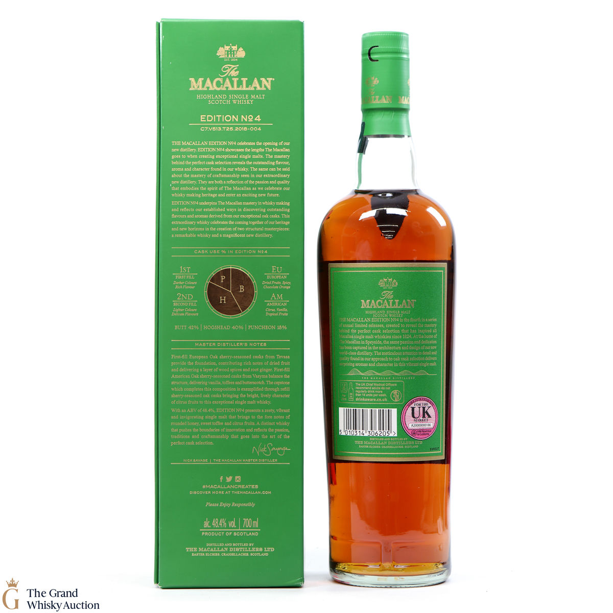 The fourth release in the Edition Series from The Macallan, this Speyside single malt is a celebration of the distillery's whisky making heritage, combining a unique selection of oak cask styles. Edition No.4 reflects the craftsmanship and pioneering design of the new Macallan distillery.