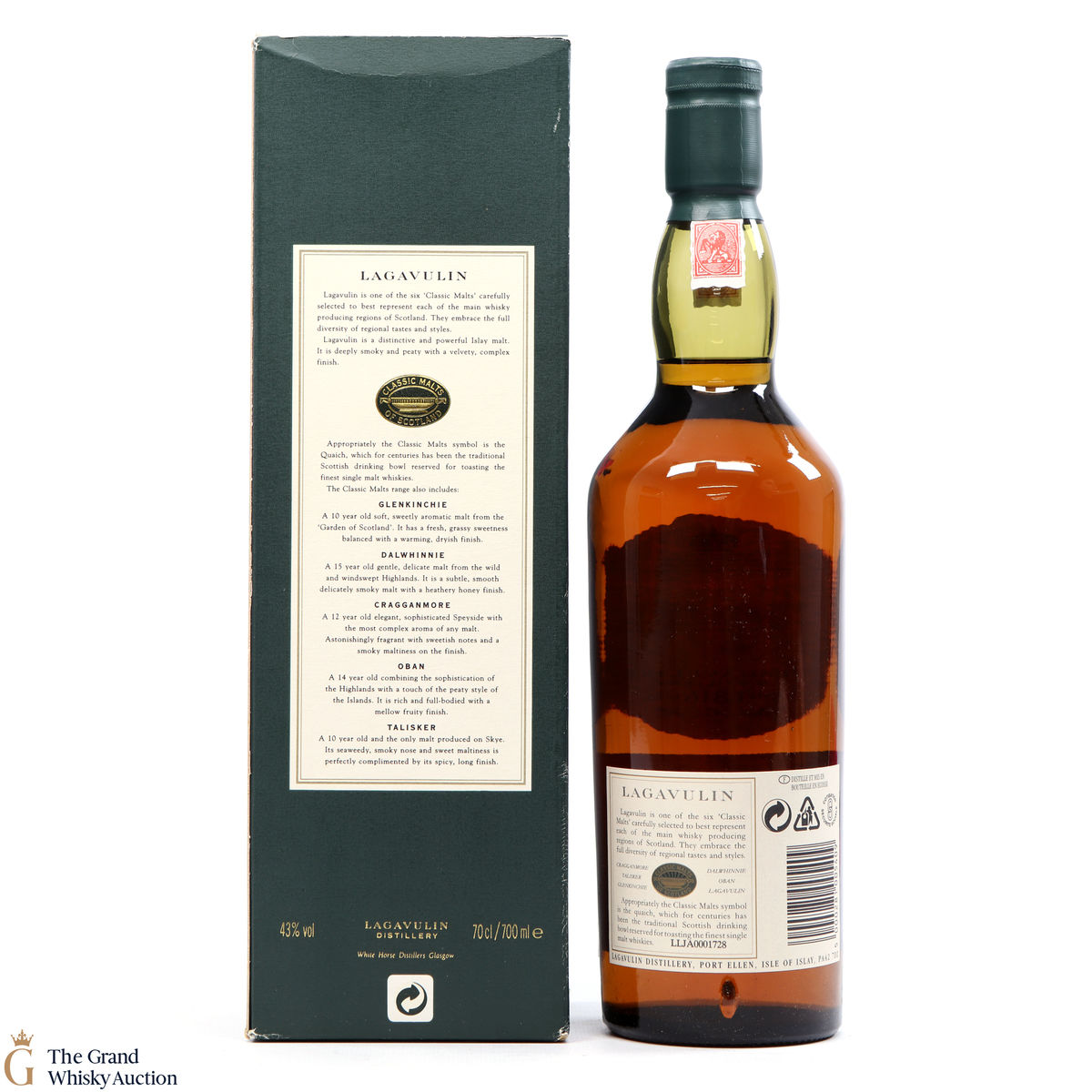 Due to the various ages of bottles and their seals, the condition of liquid is at the buyer's discretion and no claim can be lodged against failure/leakage in transit. Loss and breakage cover is available at 3% of the hammer price as standard. If the lot is not insured, no claim can be lodged against the courier or The Grand Whisky Auction for breakage or loss in transit.