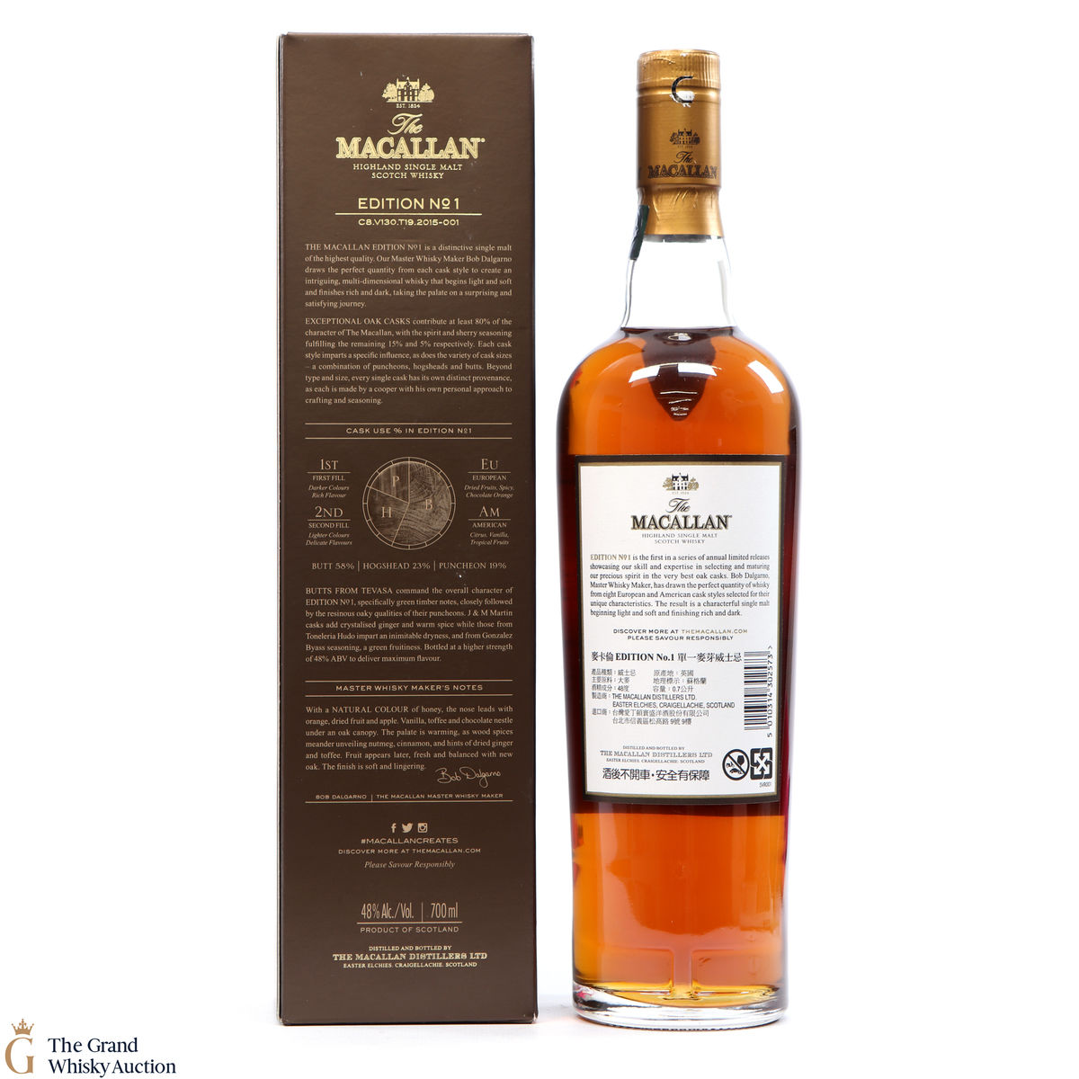 The Macallan Edition No. 1 is the debut expression in the Edition Series. This is a limited edition drawn from eight European and American oak cask styles selected for their unique characteristics.