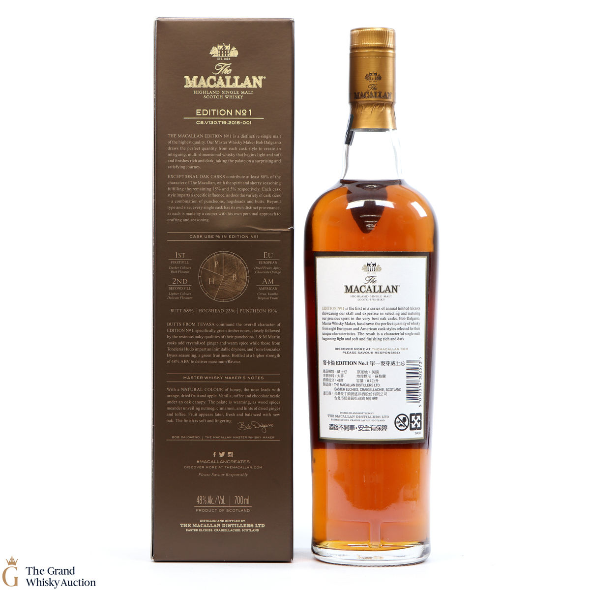 The Macallan Edition No. 1 is the debut expression in the Edition Series. This is a limited edition drawn from eight European and American oak cask styles selected for their unique characteristics.